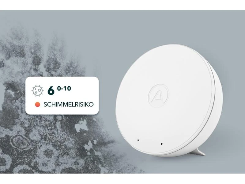 Der Schimmelrisiko Indikator erkennt keine Schimmelpilzsporen in der Luft. Er zeigt Ihnen allerdings an, wenn die Bedingungen in einem Raum die Schimmelpilzbildung begünstigen. Der Indikator verwendet einen auf den Temperatur- und Feuchtigkeitssensoren basierenden Algorithmus, um zu berechnen, wie schnell Pilz unter den aktuellen Bedingungen wachsen kann.