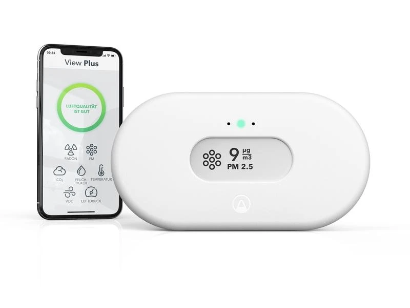 Der fortschrittlichste Luftqualitätstechnologie. Intelligenter Luftqualitätsmonitor mit individuell konfigurierbarem Display und Sensoren für Radon, Feinstaub (PM), CO2, Luftgetragene Chemikalien (VOCs) und mehr. Laut Richtlinien der WHO atmen 9 von 10 Menschen weltweit ungesunde Luft ein. Mit View Plus schützen Sie Ihre Familie vor Luftschadstoffen wie Radon, Feinstaub (PM), CO2, luftgetragene Chemikalien (VOCs) und haben wichtige Faktoren wie Luftfeuchtigkeit, Temperatur und Luftdruck jederzeit unter Kontrolle. Lokale Pollenwerte in Echtzeit sowie Vorhersagen sehen Sie direkt in der Airthings-App.