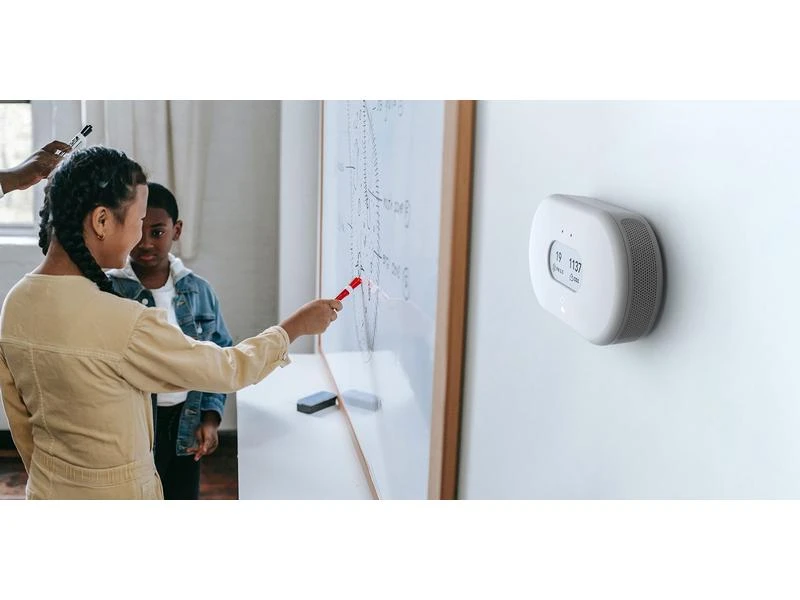 Lassen Sie sich auf dem individuell konfigurierbaren Display oder indem Sie vor dem Gerät winken die Werte von Schadstoffen anzeigen, die ausserhalb der empfohlenen Werte liegen.