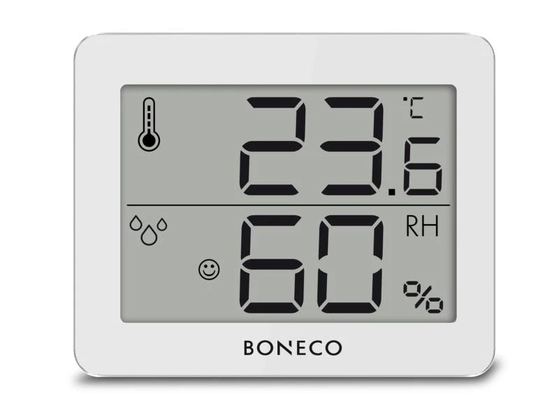 Der Thermo-Hygrometer X200 von Boneco zeigt Ihnen die Raumtemperatur und relative Luftfeuchtigkeit an. Das Gerät verfügt über eine kompakte Bauweise und ist einfach in der Bedienung. Die Temperaturangaben können Sie in Celsius oder in Fahrenheit anzeigen lassen.