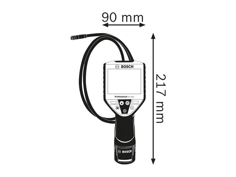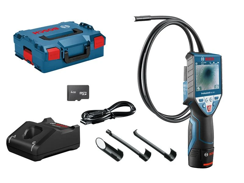 Die GIC 120 C von Bosch Professional ist genau der richtige Helfer, um komfortabel Inspektionen und Dokumentationen von schwer zugänglichen Stellen vorzunehmen. Das Gerät lässt sich entweder mit einem 10.8-V-Akku oder mit Standard-Alkalinebatterien betreiben. Dank 120 cm langem Kamerakabel erreichen Sie selbst Problemstellen.