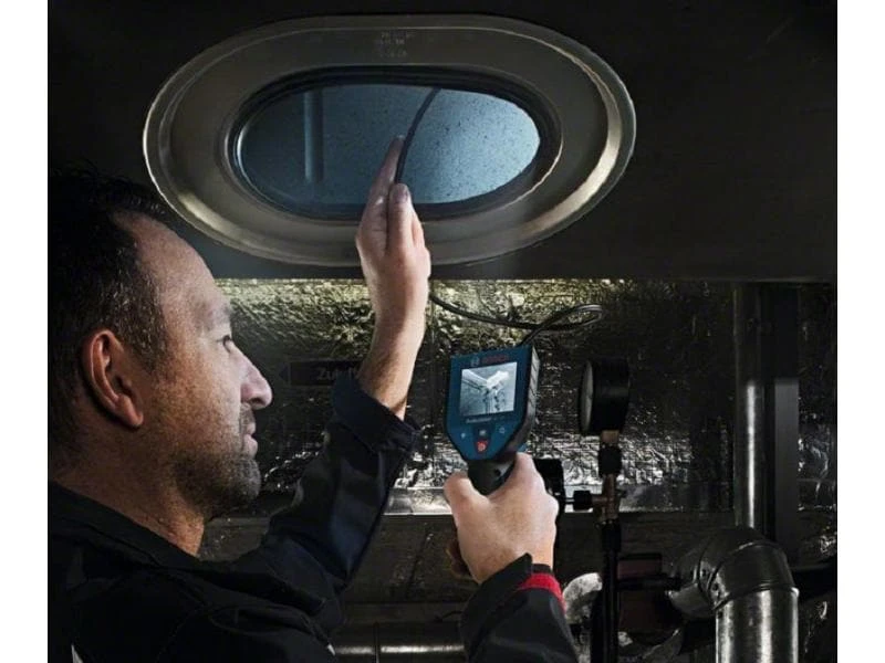 Die GIC 120 C von Bosch Professional ist genau der richtige Helfer, um komfortabel Inspektionen und Dokumentationen von schwer zugänglichen Stellen vorzunehmen. Das Gerät lässt sich entweder mit einem 10.8-V-Akku oder mit Standard-Alkalinebatterien betreiben. Dank 120 cm langem Kamerakabel erreichen Sie selbst Problemstellen.