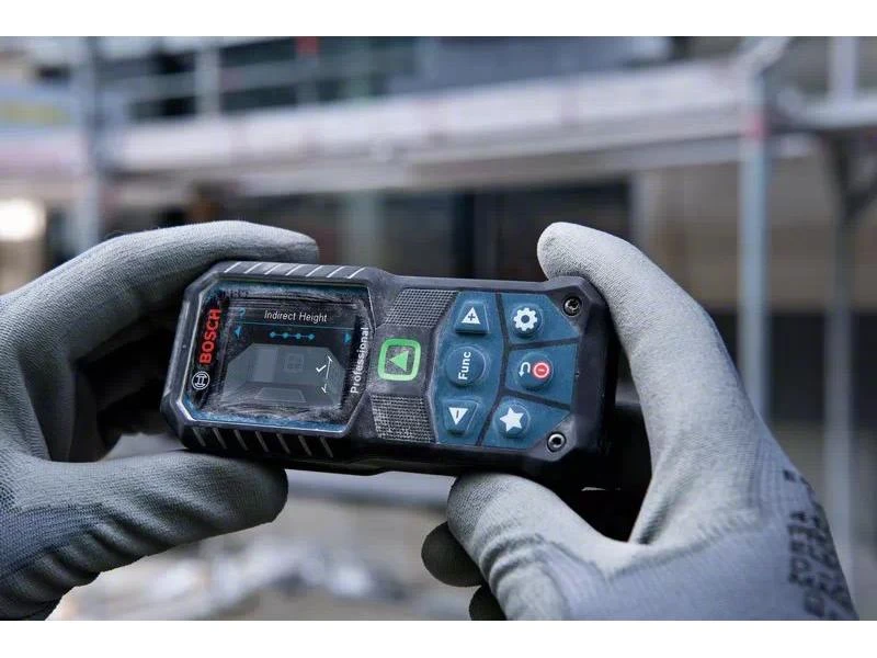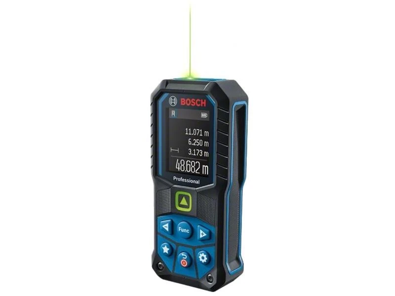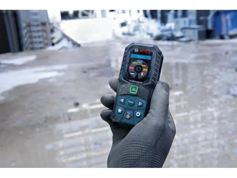 Der GLM 50-25 G Professional bietet einen gut sichtbaren, grünen Laserpunkt für leichteres Zielen beim Messen über grosse Distanzen im Innenbereich. Mit seinem IP65-Design bietet er vollständigen Schutz vor Staubteilchen und Strahlwasser, während sein stossabsorbierendes Gehäuse sogar Stürzen aus 1.5 m Höhe auf harten Beton standhält. Er verfügt über eine Taste für individuelle Anpassungen, mit der bevorzugte Messfunktionen und Einstellungen oder ein Vibrations-Feedback zur Bestätigung von Messungen eingestellt werden können. Sein intuitives User Interface unterstützt 30 Sprachen und bietet ein Farbdisplay; der Modus Grosse Zahlen sorgt für eine bessere Ablesbarkeit.