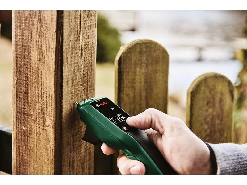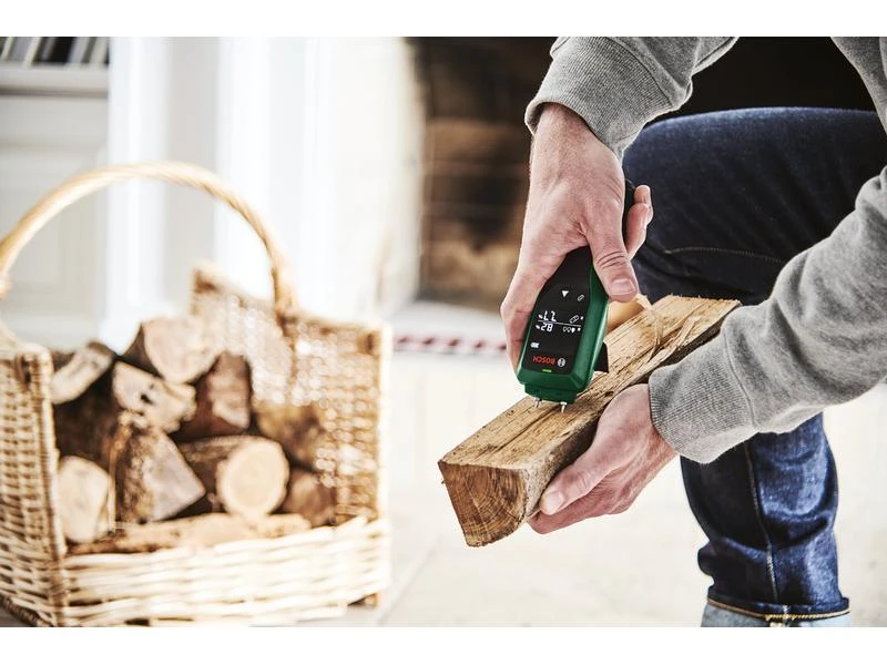 Der Bosch UniversalHumid Holzfeuchtigkeitsmesser wird verwendet, wenn die Holzfeuchte vor der Nutzung von Kaminholz, beim Parkettverlegen oder zum Schutz vor Schimmel ermittelt werden muss. Zum einfachen und genauen Prüfen stehen zwei vorprogrammierte Holzgruppen mit ihrem jeweils breiten Messspektrum zur Verfügung. Die Anwendung ist kinderleicht: Zum Messen werden einfach die zwei Messpins ins Holz gesteckt. Anschliessend sind die Werte auf dem grossen Display gut ablesbar. Das Gerät eignet sich auch ideal für Vorprüfen von Kaminholz für weniger Emissionen und Rauchentwicklung oder vor dem Möbel-Upcycling, z. B. um Risse zu vermeiden.