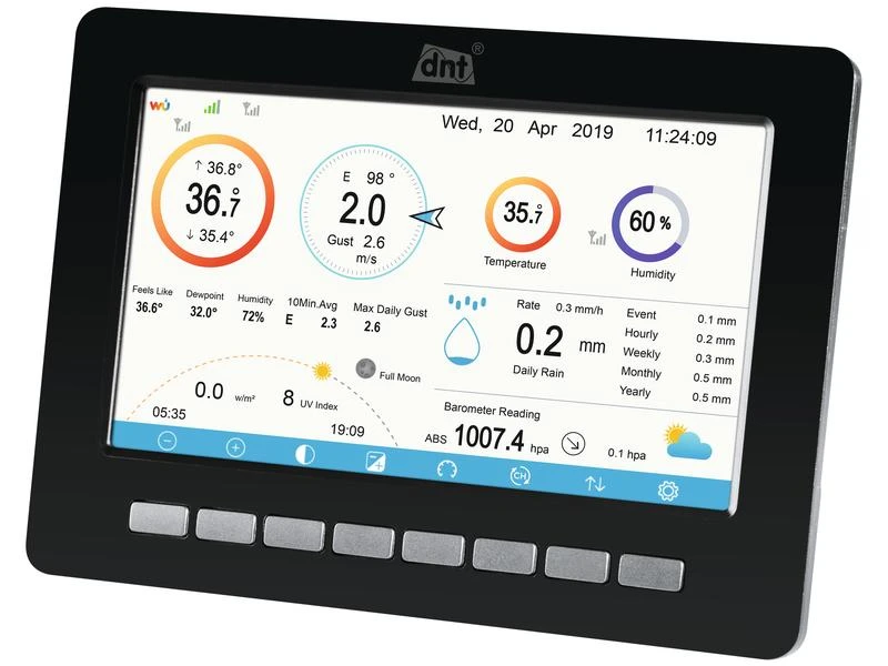 Die Wetterstation bietet eine Wettervorhersagefunktion mit einfach erfassbaren Wettersymbolen sowie eine praktische Alarmierungsfunktion. Über spezielle Farbanzeigen können Temperatur- und Luftfeuchtedatenbereiche bereits aus grösserer Entfernung erkannt werden. Die TFT-Anzeige ist – je nach individuellem Geschmack – umschaltbar zwischen dunklem und hellem Hintergrundmodus.