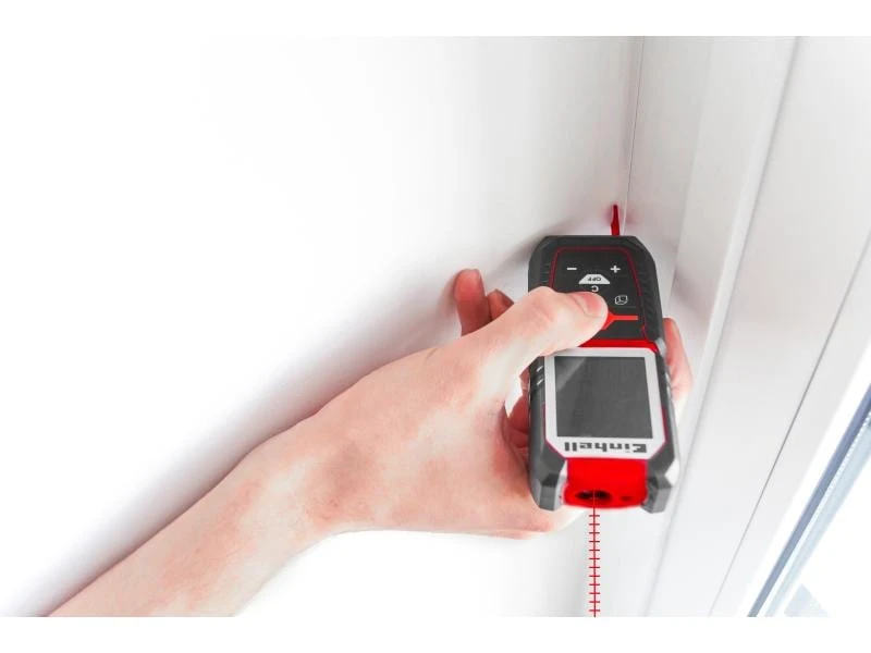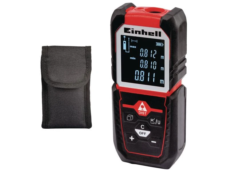 Der Laser-Distanzmesser TC-LD 50 von Einhell ist ein kompaktes Gerät zur Messung sowie Addition/Subtraktion von Strecken, Flächen und Volumen. Es eignet sich ideal zum Ausmessen bei Neubauten, Sanierungs- und Renovierarbeiten, bei Gestaltung des Gartens oder in der Werkstatt. Das Gerät verfügt über eine variable Schnittstelle zum Messen, welche ab Vorder- oder Hinterkante einstellbar ist. Zudem ist das TC-LD 50 dank der Min/Max-Funktion in der Lage Dauermessungen durchzuführen.