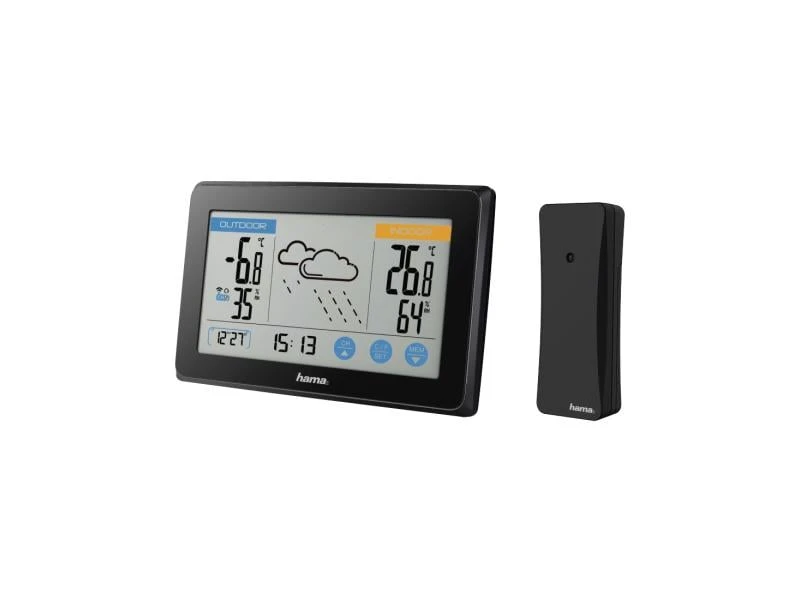 - Anzeige der Aussentemperatur, Anzeige der Innentemperatur, Anzeige der Luftfeuchtigkeit Innen und Aussen, Anzeige Uhrzeit mit Datum, Datenspeicherung, Funkuhr, Weckfunktion, Wettervorhersage