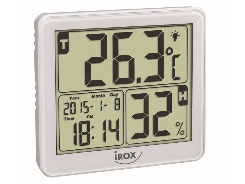 Das Thermo-/Hygrometer DTH-16W von iROX ist der ideale Begleiter für die Überwachung der Innentemperatur und Luftfeuchtigkeit in Ihrem Zuhause. Auf dem grossen Display mit Hintergrundbeleuchtung werden Ihnen die Raumtemperatur, die Luftfeuchte, die Uhrzeit und das Datum angezeigt. Das handliche Gerät lässt sich bequem aufstellen oder auch an der Wand montieren. Benötigt wird eine AA-Batterie. Sie ist im Lieferumfang nicht enthalten.