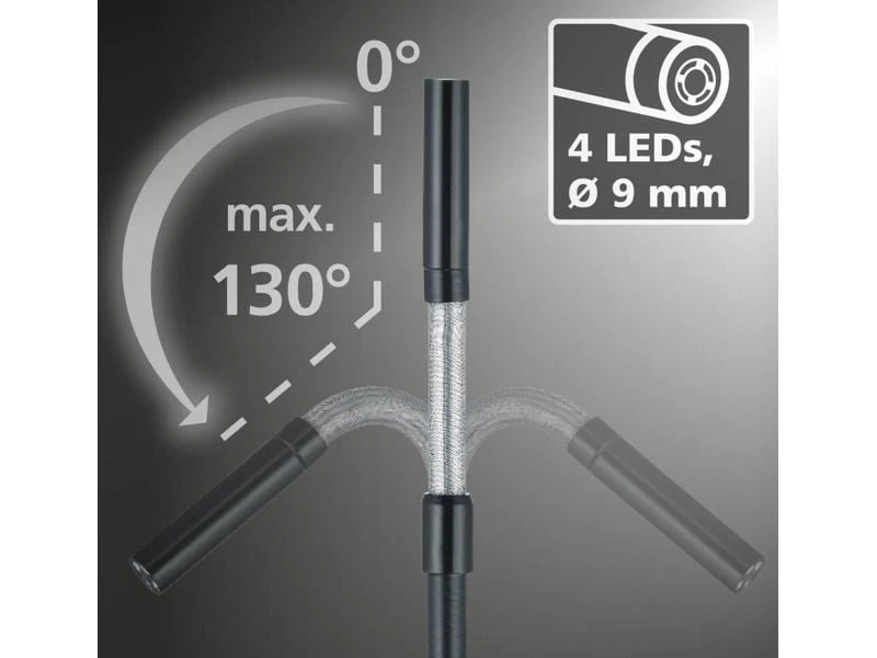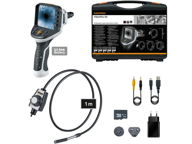 Das professionelle Videoinspektionssystem VideoFlex G4 Arc ermöglicht visuelle Kontrollen an schwer zugänglichen Stellen, beispielsweise in Rohrleitungen, Wandhohlräumen und Kraftfahrzeugen. Der Anwender hat eine einfache räumliche Orientierung durch intuitives Drehen der Basiseinheit. Für den Einsatz auf grosser Distanz ist der extrem lange 10 Meter Flexschlauch ideal. Mit effektiver LED-Objektbeleuchtung gelingen selbst unter schlechten Bedingungen hervorragende Aufnahmen. Aufgrund einer naturtreuen Wiedergabe von Farben wird eine realitätsnahe Darstellung geboten. Details lassen sich über die Zoom-Funktion klar erfassen. Das ergonomisch designte Gerät liegt gut in der Hand und ist auch bei längeren Arbeiten angenehm zu nutzen. Acht verfügbare Sprachen und die wechselbare Kameraeinheit sorgen für vielfältige Einsatzmöglichkeiten. Eine SD-Speicherkarte dient zur Dokumentation und die USB-C-Schnittstelle zum Auswerten der Bilder und Videos.