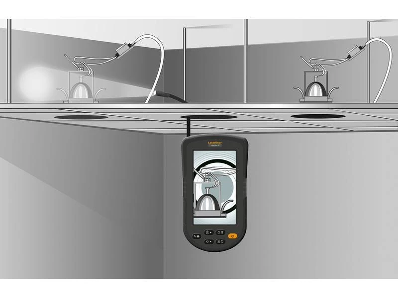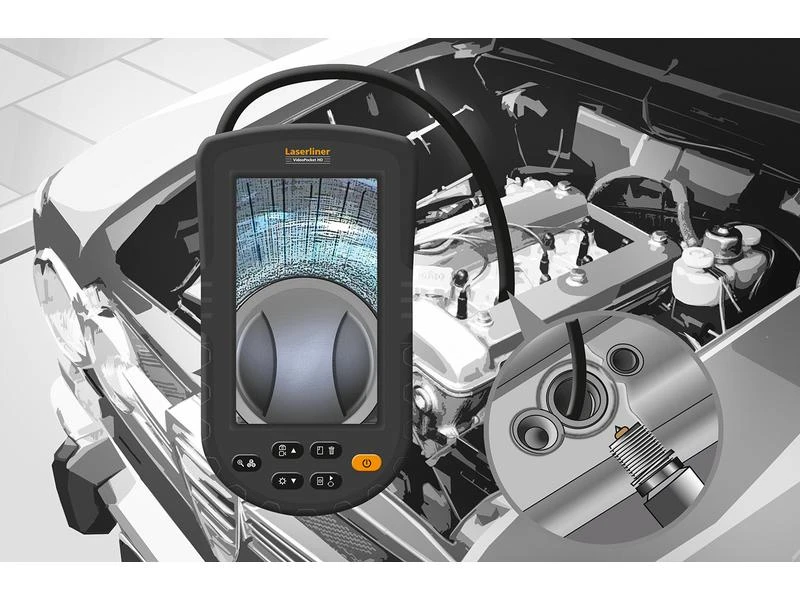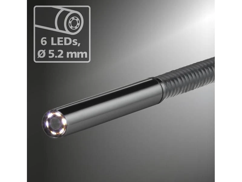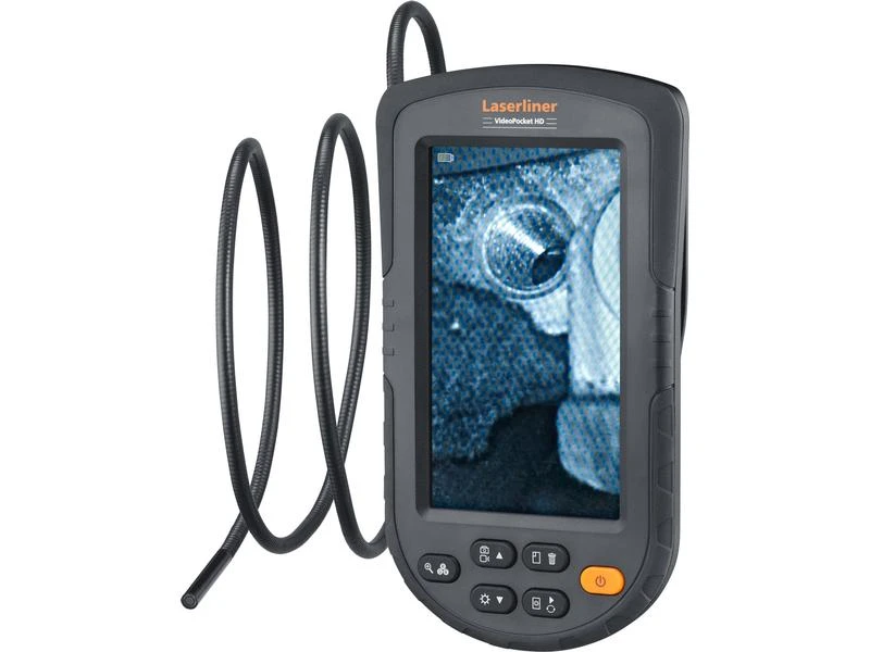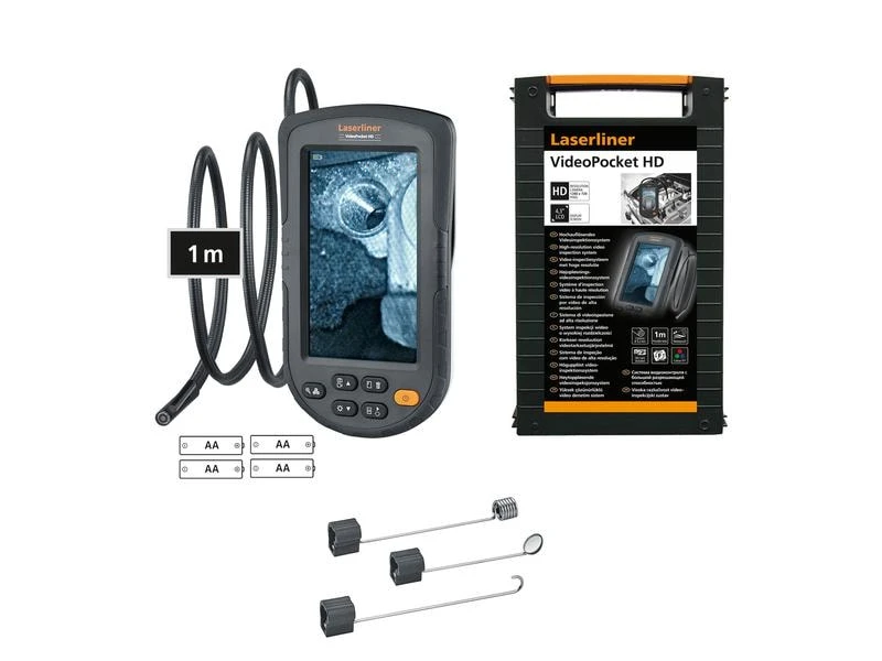 Die VideoPocket HD ist ein hochauflösendes Videoinspektionssystem mit optimal ablesbarem grossen Display, Bildvergleichsfunktion, wasserdichter Kameraeinheit sowie praktischen Spiegel-, Magnet- und Hakenaufsätzen. Dieses hochauflösende und kompakte Videoinspektionssystem ermöglicht detailreiche visuelle Untersuchungen von schwer erreichbaren Stellen, unter anderem in Rohrleitungen, abgehängten Decken und Kraftfahrzeugen. Während des Einsatzes sorgen sechs Hochleistungs-LEDs an der wasserdichten Kameraeinheit für eine effektive, in zehn Stufen einstellbare Objektbeleuchtung. Einzelheiten lassen sich über die Zoom-Funktion klar erfassen. Dank des grossen Farbdisplays und der Bildausrichtung sind die Inspektionsergebnisse optimal erkennbar. Per Bildvergleichsfunktion können Anwender die Unterschiede zwischen dem Live-Bild und einem gespeicherten Referenzbild direkt feststellen. Zur Dokumentation der Bild- und Videoaufnahmen stehen der interne Fotospeicher und eine Micro-SD-Karte zur Verfügung. Aufgrund der handlichen Grösse überzeugt das Gerät durch ausgezeichnete Handlichkeit und Transportfähigkeit. Mit den Magnet- und Hakenaufsätzen können schwer erreichbare Gegenstände angezogen und angehoben werden. Der Spiegelaufsatz erlaubt es, Objekte im 90° Winkel zu betrachten.