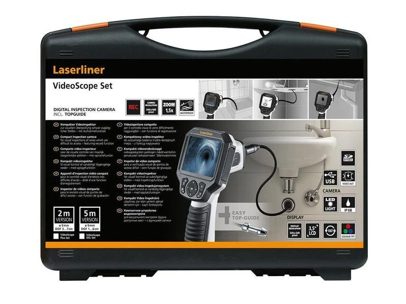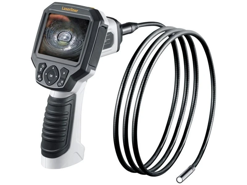 Der kompakte Videoinspektor eignet sich für die einfache Kontrolle schwer zugänglicher Stellen in Rohren, Hohlräumen, Schächten, Mauerwerk und Kraftfahrzeugen. Ein kleiner, wasserdichter 9 mm Kamerakopf und der 5 Meter lange Flexschlauch dienen vielseitigen Einsatzmöglichkeiten, auch bei grossen Distanzen. Die Beleuchtung mit vier Hochleistungs-LEDs ermöglicht klare Aufnahmen selbst unter schlechtesten Bedingungen. Durch Rotation am Monitor wird das Bild immer passend dargeboten. Das Gerät verfügt über einen internen Speicher und eine SDHC-Formatierungsfunktion für die direkte Übertragung der Videos und Bilder auf einen PC. Die Führungshülse sorgt für ein optimales Gleiten entlang unebener Oberflächen. Auflösung Kamera 640 x 480 Pixel, Auflösung Display 320 x 240 Pixel, Auflösung Bild / Video 720 x 480 Pixel, Bildformat /Videoformat: JPEG / AVI. LED 10 Helligkeitsstufen, ZOOM 1.5-fach Digitalzoom in 10% Schritten, Speicher Unterstützt SDHC-Karte bis max. 8 G.