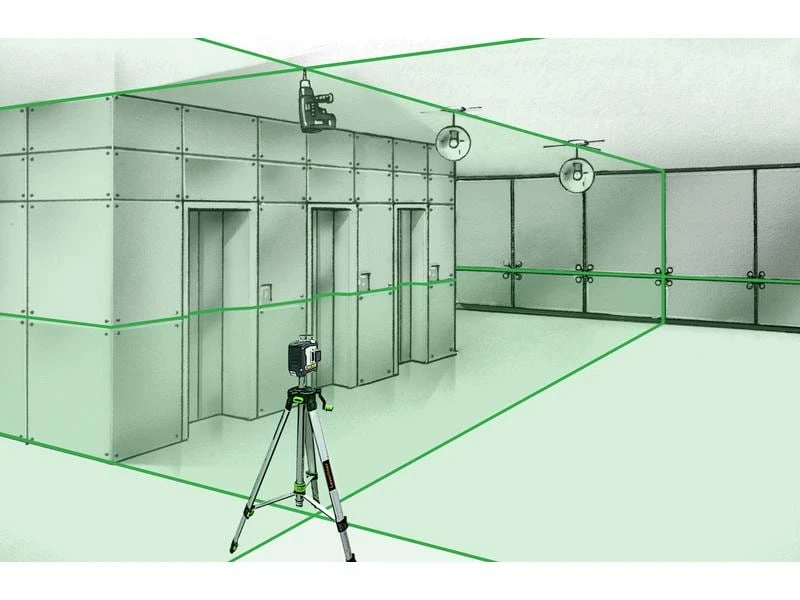 Einfache Handhabung – die Kreuzlinienlaser richten sich automatisch aus. Helle Laserlinien machen sie vielseitig einsetzbar beim Fliesen, Ständerwerkaufbau, Fenstereinbau und mehr. Die Kreuzlinienlaser mit Laserempfänger können sogar im Aussenbereich verwendet werden. Grüne Kreuzlinienlaser garantieren beste Sichtbarkeit. Grün erscheint 6x heller als rot. Das ermöglicht Anwendungen auf dunklen Oberflächen, auf längere Distanzen und Arbeiten bei sehr hellem Umgebungslicht. Als Bezugsgrösse für den Helligkeitsunterschied gilt ein roter Laser mit 635 nm Wellenlänge.