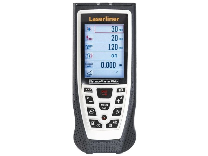 DruckenDistanceMaster Vision ist ein präziser Entfernungsmesser zum Erfassen von Längen-, Flächen- und Volumen. Die praktische Anwendung ermöglicht es Wandflächen mit gleicher Höhe automatisch zu addieren und mit der Absteckfunktion können definierte Messlängen abgetragen werden. Die Messwerte werden mit dem internen Speicher gut dokumentiert.
