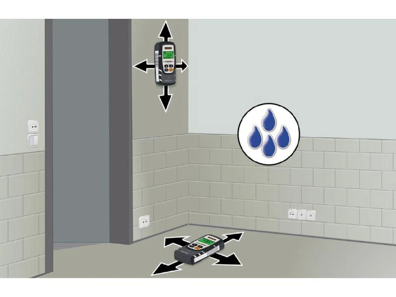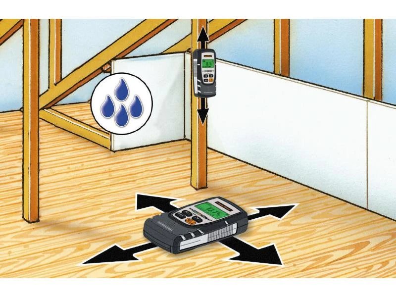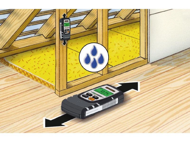 Der MoistureMaster Compact von Laserliner misst mittels Kapazitiv-Messerverfahren bis 4 auswählbare Materialkennlinien. Zur Messung lässt sich das Gerät einfach auf die gewünschte Oberfläche legen.