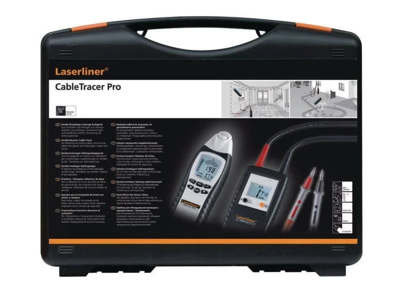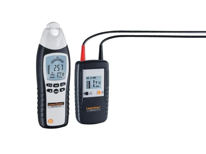 Das CableTracer Pro-Set ist ein Leistungs-Suchgeräte-Set mit Sender und Emfänger. Die Geräte ermöglichen Ihnen eine berührungslose Verfolgung des Sendesignals durch den Empfänger sowie die Lokalisierung elektrischer Kabel, Sicherungen, Schutzschalter, metallischer Rohre und vielem mehr.