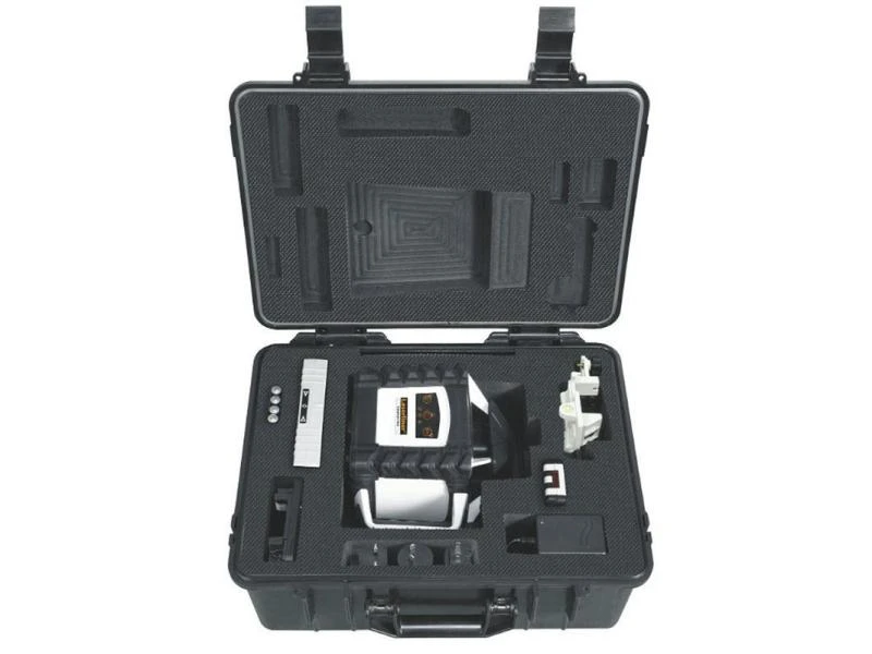 Der Laser mit einer Laserwellenlänge von 635 nm kann mit einer hohen Genauigkeit von ± 1 mm auf 10 m überzeugen. Der Selbstnivellierungsbereich liegt bei ± 5° und die Nivellierung kann horizontal und vertikal erfolgen. Die Steuerung aller Funktionen können Sie über eine Fernbedienung auf bis zu 40 m vornehmen. Während des Transports im inkludierten Tragekoffer wird der Rotationslaser durch eine Motorbremse geschützt, sodass Sie ihn immer unbeschädigt an den Einsatzort transportieren können. Zudem gewährleistet der Akku eine Betriebsdauer von bis zu 35 Stunden bei einer Ladezeit von 7 Stunden.