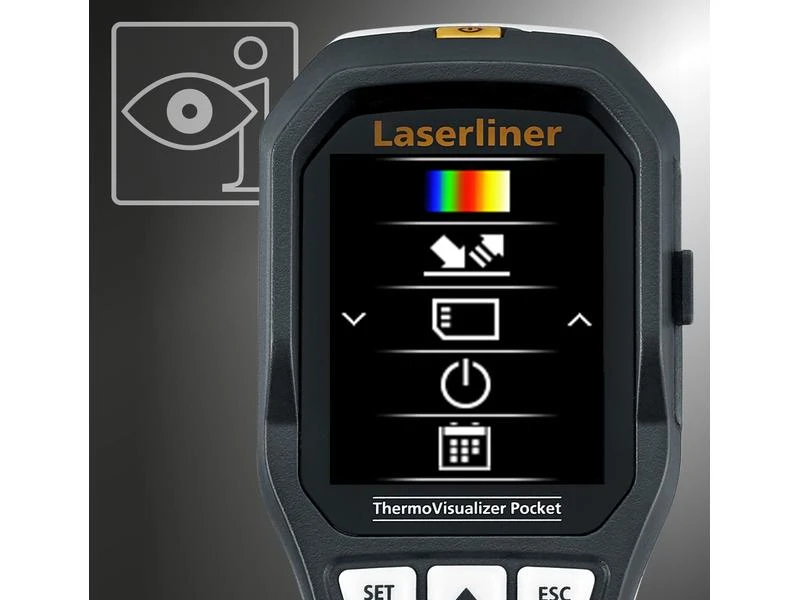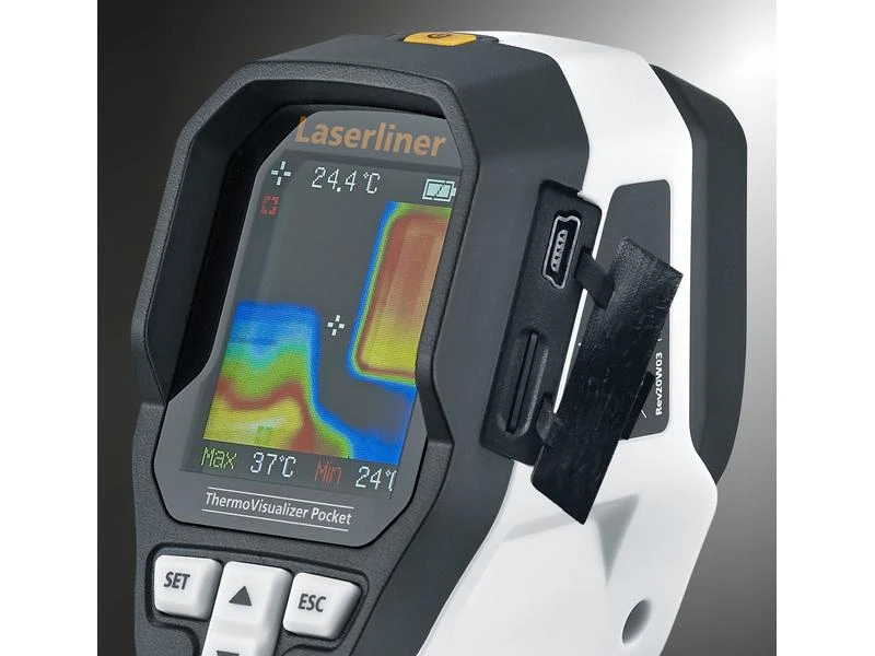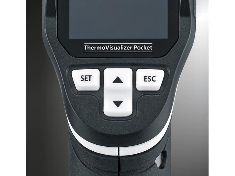 Der ThermoVisualizer Pocket ist eine Wärmebildkamera zur Visualisierung von Temperaturverläufen im Bauwesen, der Elektrotechnik und Industrie. Die Wärmebildkamera ermöglicht das Visualisieren von Temperaturverläufen, Energieverlusten, Wärmebrücken, elektrischen Überlastungen und Feuchtigkeitsbildung. Durch das Infrarotbild, Digitalbild und Mix-Bild erhält der Anwender eine flexible Darstellung des Prüfbereiches. Die Bildspeicherung erfolgt auf der auswechselbaren Micro-SD-Karte.Das Gerät verfügt über eine USB-Schnittstelle und ein kontrastreiches TFT-Farbdisplay und eine Min./Max.- Anzeige. Nach einem einstellbaren Zeitraum erfolgt die energiesparende automatische Abschaltung. Das Gerät weist dank dem grossen Messbereich vielseitige Einsatzmöglichkeiten auf.