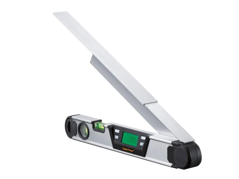 Weiter verfügt das Gerät über eine Auto-Hold-Funktion, dank welcher Sie Arbeiten ohne Sichtkontakt zum Display durchführen können. Auf Tastendruck wird die Winkelhalbierende angezeigt. Durch seine Vertikal- und Horizontal-Libelle dient der Winkelmesser auch als Wasserwaage.