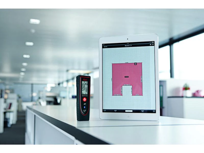 Das Laserdistanzmessgerät Disto D110 eignet sich besonders für Profis, die regelmässig Flächen- und Distanzabmessungen vornehmen müssen. Mithilfe der integrierten Bluetooth Datenübertragung und der kostenlosen Leica «Disto sketch» App lassen sich Messergebnisse direkt auf ein mobiles Endgerät übertragen, sodass präzise Grundrisse und Skizzen erstellt werden können. Das benutzerfreundliche Handling und die kompakte Form machen den Disto D110 zum optimalen Werkzeug.