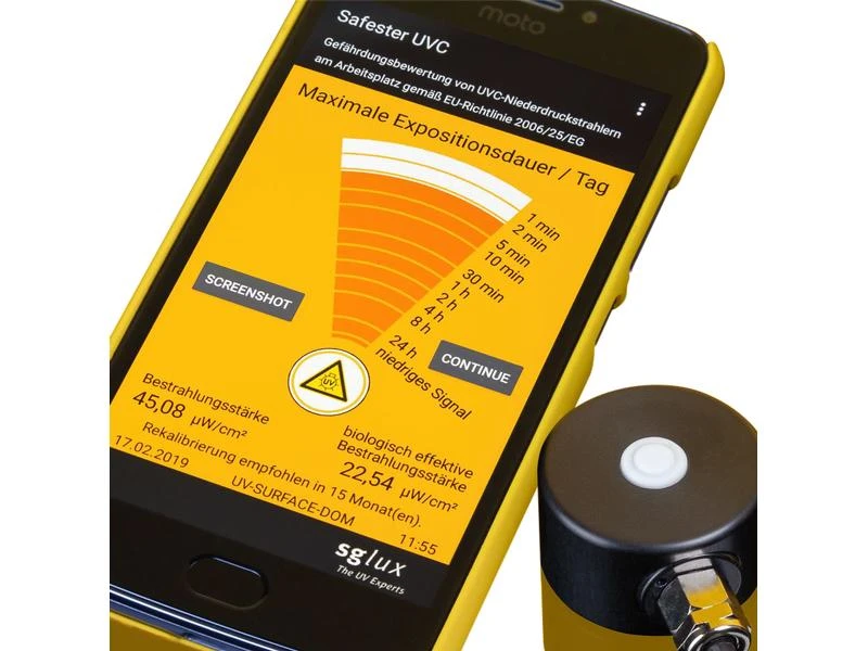- Smartphone-basiertes Messgerät zur gesetzlich vorgeschriebenen Gefährdungsbeurteilung von UVC-Niederdruckstrahlung am Arbeitsplatz gemäss Richtlinie 2006/25/EG