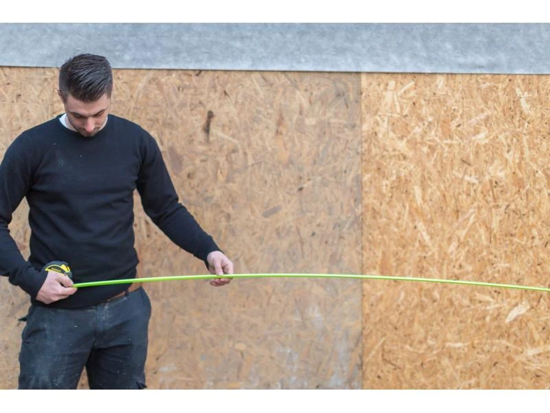 Das Bandmass FATMAX ist dank des Gehäuses aus Bi-Material sehr robust, wodurch es für Innen- und Aussenanwendungen geeignet ist. Das Band selbst ist vollständig mit einem Mylar-Schutz sowie einer fluoreszierenden Schicht überzogen. Auf den ersten acht cm ist das Band zusätzlich mit einer Blade Armor Folie überzogen. Die hohe Stabilität erlaubt es, das Band bis zu vier Meter horizontal auszuziehen, ohne zu knicken.