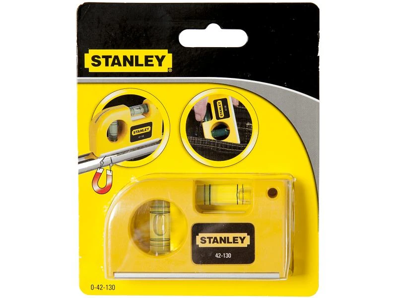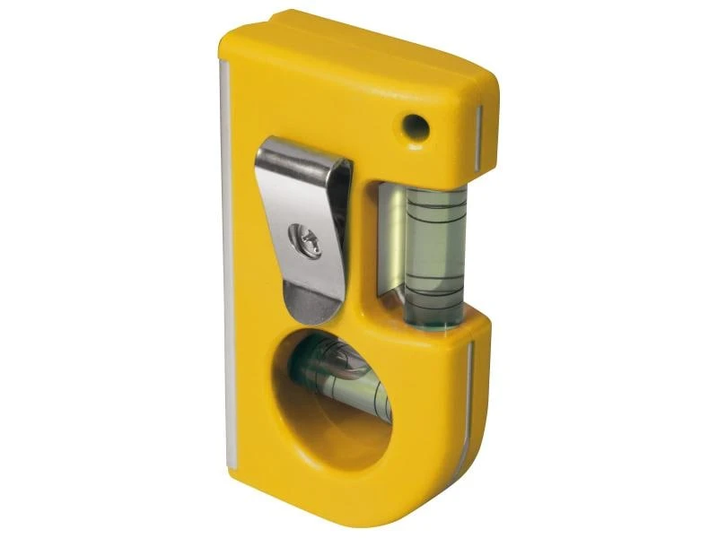 Die kompakte Taschen-Wasserwaage verfügt über ein robustes Kunststoff-Gehäuse. Die zwei Libellen (horizontal und vertikal) sind leicht ablesbar. Die Sohle ist stark magnetisch (Seltenerd-Metall), und dank der Hohlkehle in der Messfläche eignet sich die Wasserwaage auch ideal für gewölbte Flächen.