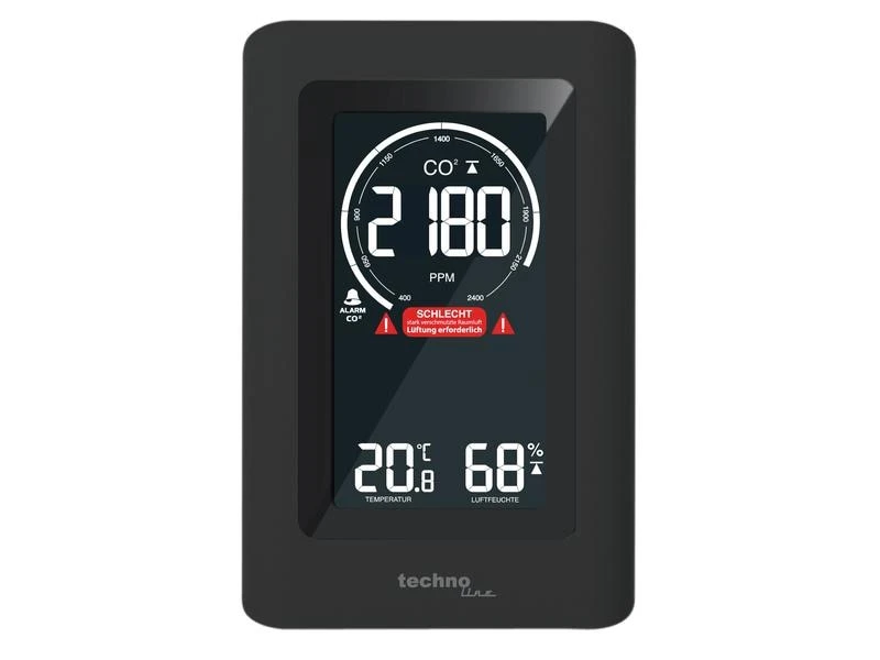 Hohe CO2-Werte in der Luft senken die Konzentrations- und Leistungsfähigkeit. Zur Verbesserung des Raumklimas und zum Erhalt der Gesundheit ist regelmässiges und rechtzeitiges Lüften zu empfehlen. Der WL1030 bietet genaue Messwerte. Basis für die genauen Werte ist ein leistungsstarker NDIR-Gassensors mit CO2-Messung und die zusätzliche Kalibrierungsfunktion. Der technoline WL 1030 ist gleichermassen geeignet für private, gewerbliche und öffentliche Räumlichkeiten und unterstützt mit Lüftungsempfehlungen zum richtigen Zeitpunkt ein gesundes Raumklima und die Aufrechterhaltung der Gesundheit. Der CO2-Gehalt in der Raumluft wird durch genaue ppm-Werte angezeigt und durch Lüftungsempfehlung mit farbigen Hinweisfelder im Ampelsystem versehen.