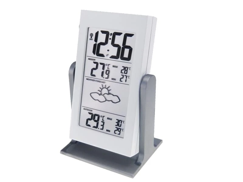 Seien Sie immer mit den besten Wetterinformationen ausgestattet und wissen Sie jederzeit, ob Sie einen Regenschirm benötigen. Die Wetterstation erstellt eine Wettervorhersage und zeigt Ihnen zusätzlich die exakte Innen- und Aussentemperatur an. Zudem besitzt sie einen Weckalarm mit Schlummerfunktion. Die Wetterstation wird mit einem Aussensender geliefert und benötigt für den Betrieb zwei AA-Batterien für den Aussensender und zwei AAA-Batterien für die Station, die nicht zum Lieferumfang gehören.