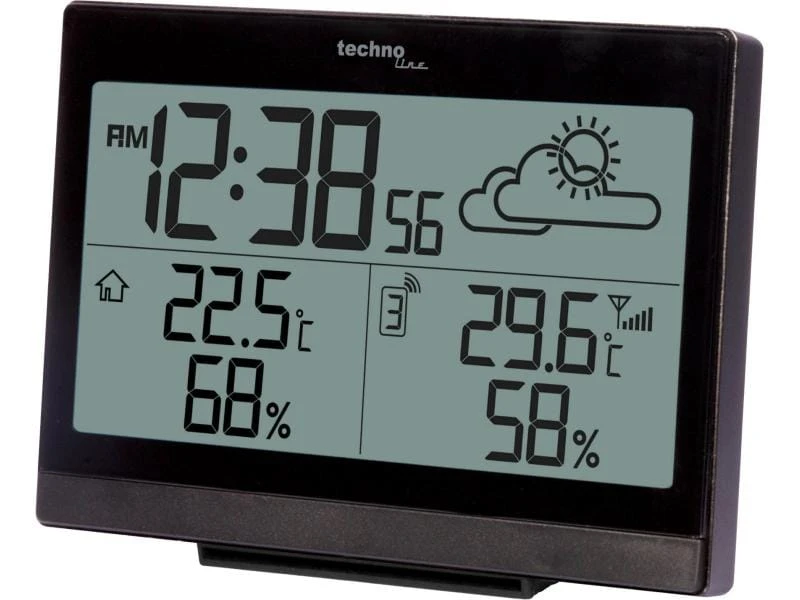 Die Technoline Wetterstation WS 9252 bietet Ihnen zusätzlich eine Funkuhr mit einer manuellen Einstelloption. Dank des Empfangs der Uhrzeit via DCF-77 Funksignal geht die Uhr immer exakt und muss nicht nachgestellt werden.