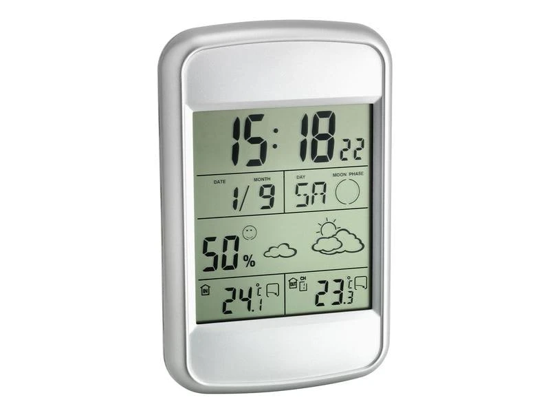 | Funktionen | Display, Aussentemperatur, Mondphasen, Innentemperatur, Uhrzeitanzeige, Aktuelle Wetterlage |