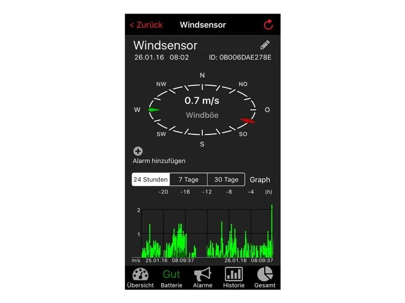 | Weitere Informationen | Messbereich Wind: 0 – 180 km/h (0-50 m/s). Max. Reichweite: 100 m |