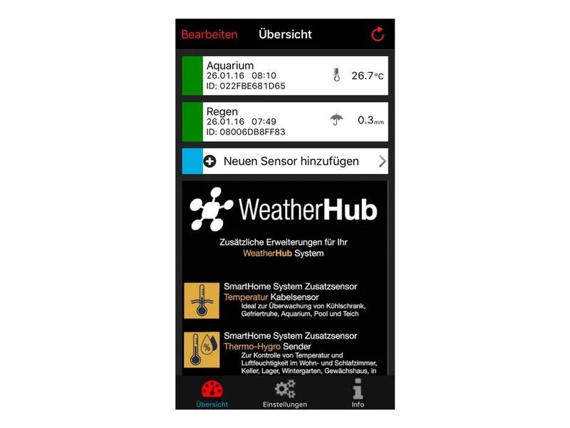 | Funktionen | Niederschlagsmenge, App Unterstützung |