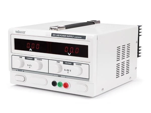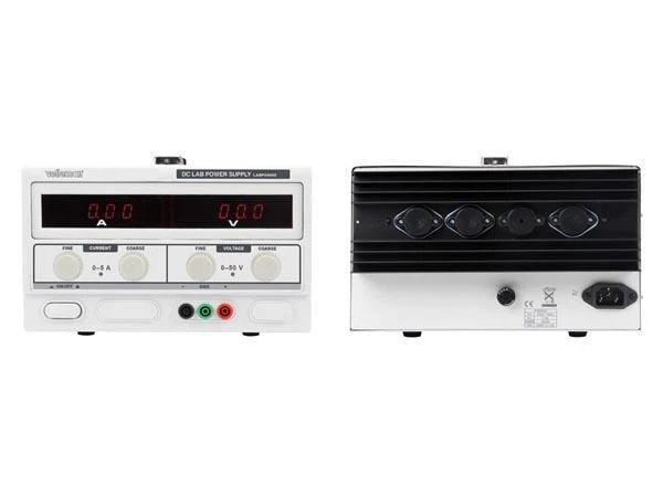 Zwei LED-Displays bilden die sichtbare Oberfläche des Labornetzgeräts LABPS5005 des Herstellers Velleman. Es verfügt über eine Ausgangsspannung von 0 bis 50 V DC und einen Ausgangsstrom von 0 bis 5 A. Für die Sicherheit sorgen der Schutzmodus, in dem man den Strom begrenzen kann, die schützende Sicherung F5 sowie die Sicherheitsbuchsen nach IEC1010.