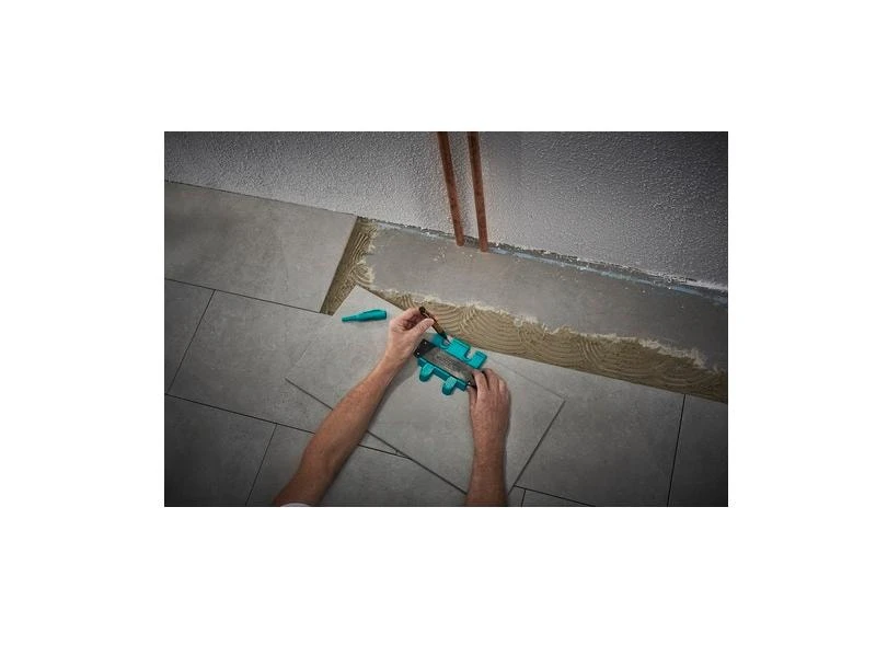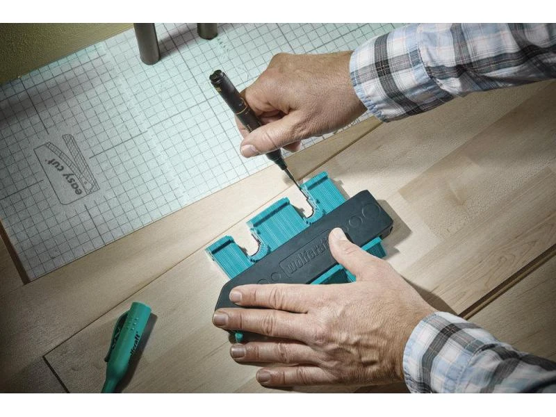 Wenn Sie beim Verlegen von Laminat, Fliesen oder Teppichen auf Heizungsrohre oder andere Hindernisse stossen und deren Profile sauber aussägen möchten, dann ist die Konturenlehre von wolfcraft das richtige Werkezeug für Sie. Die Konturenlehre ermöglicht das einfache Abtasten und Übertragen von Schnittverläufen auf ein Werkstück – Sie brauchen nie wieder lästige Schablonen zu basteln, um präzise Ausschnitte anzuzeichnen. Die robusten Kunststoff-Fühler tasten die Kontur z. B. von Heizungsrohren ab, die sich dann mit dem Klemmhebel sicher fixieren lassen. So kann nichts mehr verrutschen und die Form kann auf das anzupassende Material leicht und exakt übertragen werden. Mit einer Konturenbreite von max. 130 mm und einer Tiefe von max. 30 mm bietet das Konturenmessgerät eine exakte Passgenauigkeit und spart Ihnen sehr viel Zeit beim Handwerken.