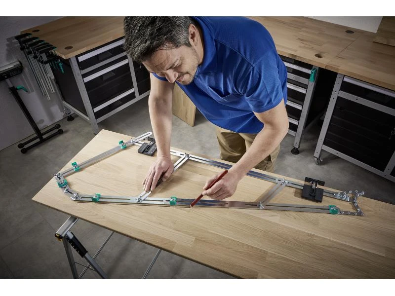 - Vereint die Vorteile einer Treppenspinne mit denen einer herkömmlichen Schablone oder Winkelschmiege